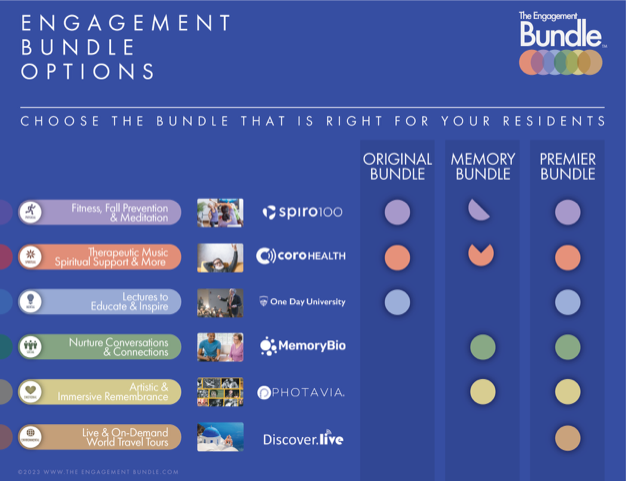 Now offering 3 unique bundled packages! Deliver unlimited enjoyment from senior living's most popular programs.